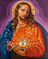 Así que, o me convertía en un (capillita) y pintaba arte sacro o tomaba otras direcciones. Creo que he tomado el camino del medio con colores pop y una interpretación diferente.